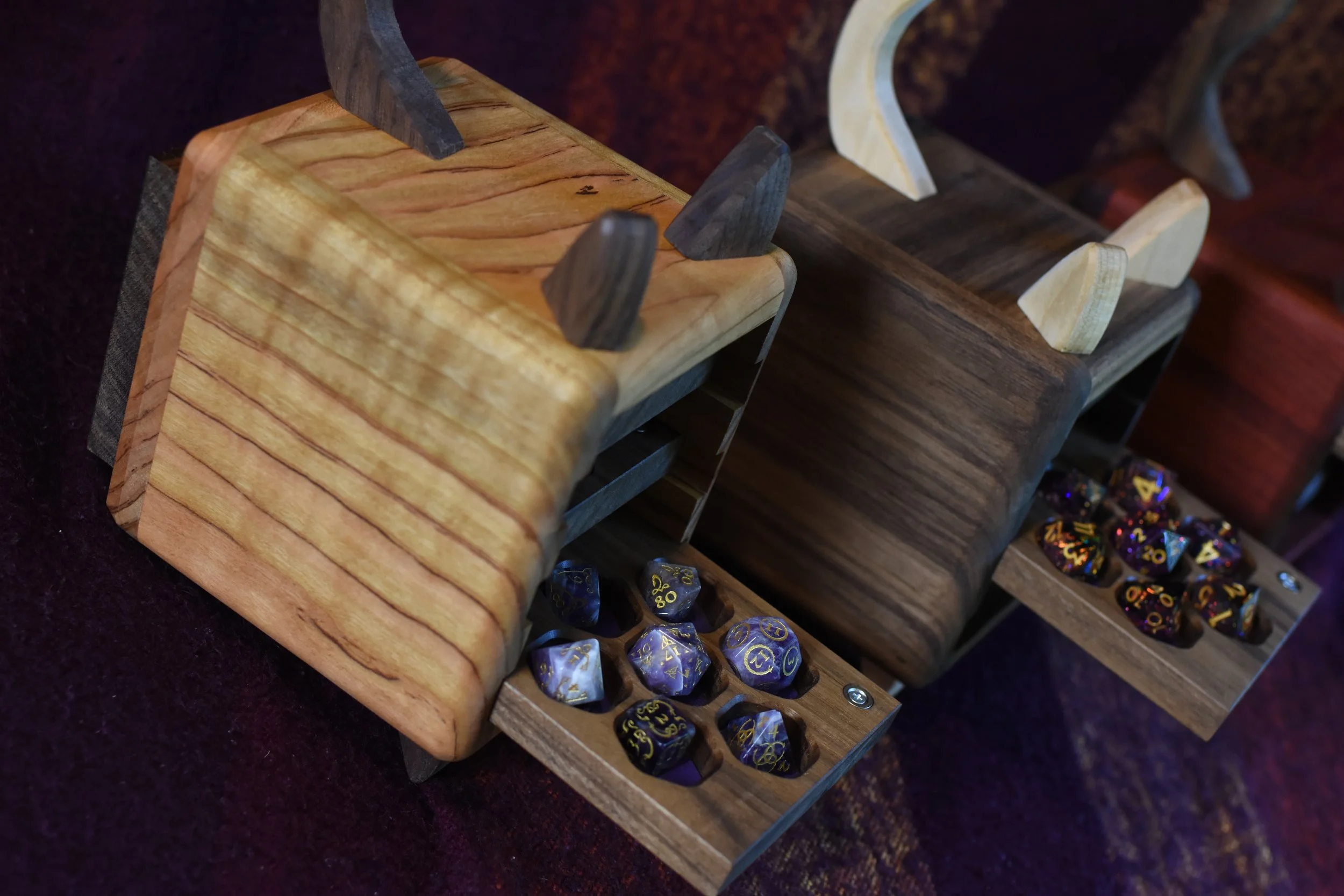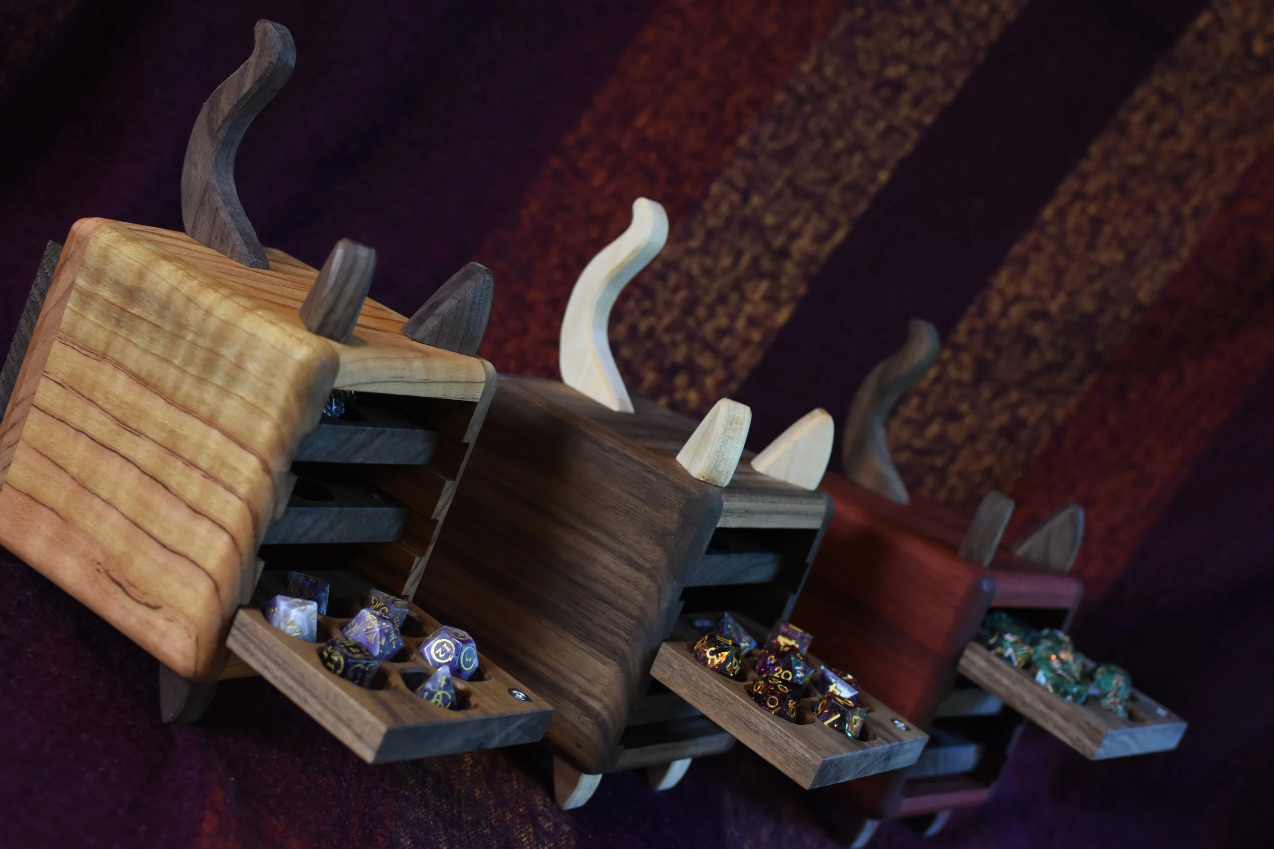 The Shop shows off our current stock! (LIMITED) Dragon Con Exclusive Foldy the Dice Guardian $160.00 Mini Mimic (Large) from $250.00 Dice Catbinet from $450.00 Foldy the Dice Guardian $225.00 Sold out Aioli Flight Rowboat $45.00 Chunk D20 Displays from $25.00 Dice Kitbinets from $265.00 Sold out The Dice Safe $4,400.00 Bigsy the Mimic $12,000.00 The Sturgeon (Black Walnut and Wormy Maple) (Ready to Ship) $4,000.00 Dice Kitbinet $265.00 Sold out Dice Catbinet Founders Edition from $450.00 Sold out Mimsy the Mimic (SOLD) $7,000.00 Sold out (SOLD) Chompsy the Mimic $3,000.00 Sold out Dicey (Accordion Dice Box) $1,900.00 Sold out Cottage Core Tea Set (Box 3000) $550.00 Sold out